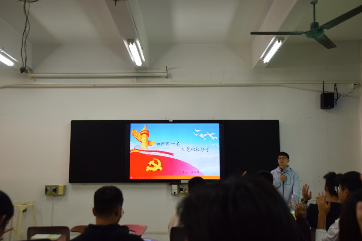 辅导员邱可荣主讲,第12期全体入党积极分子参加。