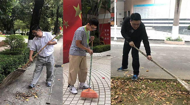 领导、老师的带领下,一起清扫校道及课室等劳动实践实验区我们期待,大家在接下来的“劳作”生活中,能够延续军训中吃苦耐劳、不畏艰难的优秀品质;也期待同学们能将“工匠之心,精益求精”的口号牢记心中,能保持一颗积极向上的心,在这一年的劳作生活中每天都能拥抱灿烂的阳光!