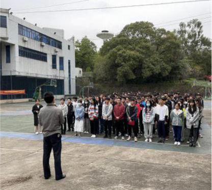 院长陈伟、系主任林春佑、教务办老师及各年级辅导员一同前往大礼堂前面的篮球场,参与20级本科生的劳动教育开班暨颁奖仪式,了解学生新学期的劳作课程情况。
