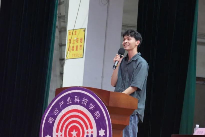 仪式第五项,2019级智能制造工程专业的罗柯同学作为校友代表发言。他分享了大学学习工作生活的经历。寄语2024级新同学永远保持热血,不断拼搏,学会感恩,要树立远大理想,做时代的弄潮儿。
