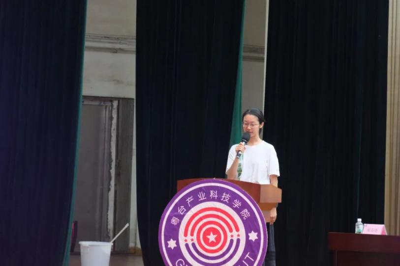仪式第六项,新生代表2024级经济与金融1班的邓子菲同学发言,她代表全体新生向师长和亲友表示真挚的感谢,并表示将在四年大学生活中,学而知不足,学以致用,开拓创新,抓紧机遇,迎接挑战。