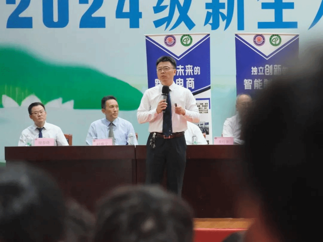 党委书记宋美娴上台讲话。她寄语2024级新生“一要敢于有梦:明方向,立目标;二要勇于追梦:善规划,敢超越;三要勤于圆梦:践行动,敢担当。”最后,宋美娴书记要求新同学积极响应习近平总书记对青年人的号召,“用脚步丈量祖国大地,用眼睛发现中国精神,用耳朵倾听人民呼声,用内心感应时代脉搏,把对祖国血浓于水、与人民同呼吸共命运的情感贯穿学业全过程、融汇在事业追求中”。
