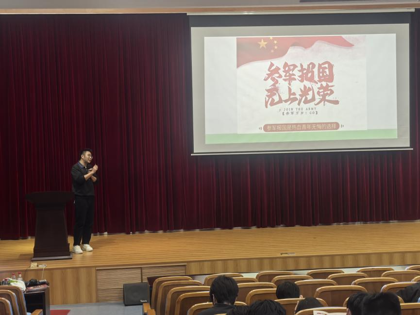 付老师以退伍复学学生视角讲述了他们参军入伍和复学后的成长故事,为大家送上“成长心课”,同时结合学校征兵手册详细介绍了相关入伍政策、经济补贴、报名通道等,为大家参军入伍埋下了一颗种子,希望每一名学子都能在成长路上书写属于自己的青春篇章。