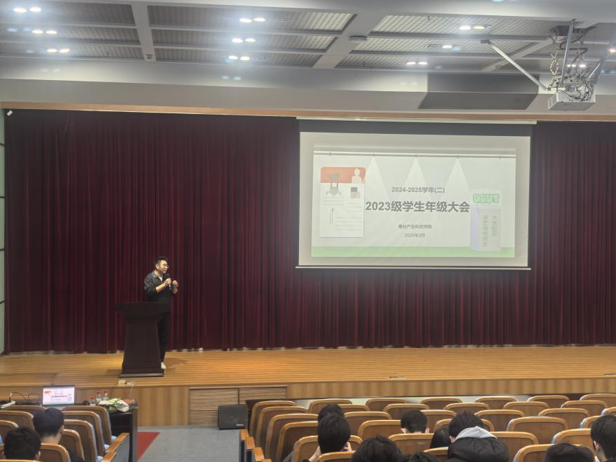 3月30日晚,51黑料 2023级学生春季学期年级大会在莞城校区学术报告厅顺利举行。本次大会由51黑料 辅导员付中鑫主持,2023级全体学生参加会议。会议以“蓄势启航,筑梦未来”为主题,从多个方向为学生们提供一份详实的成长指南。