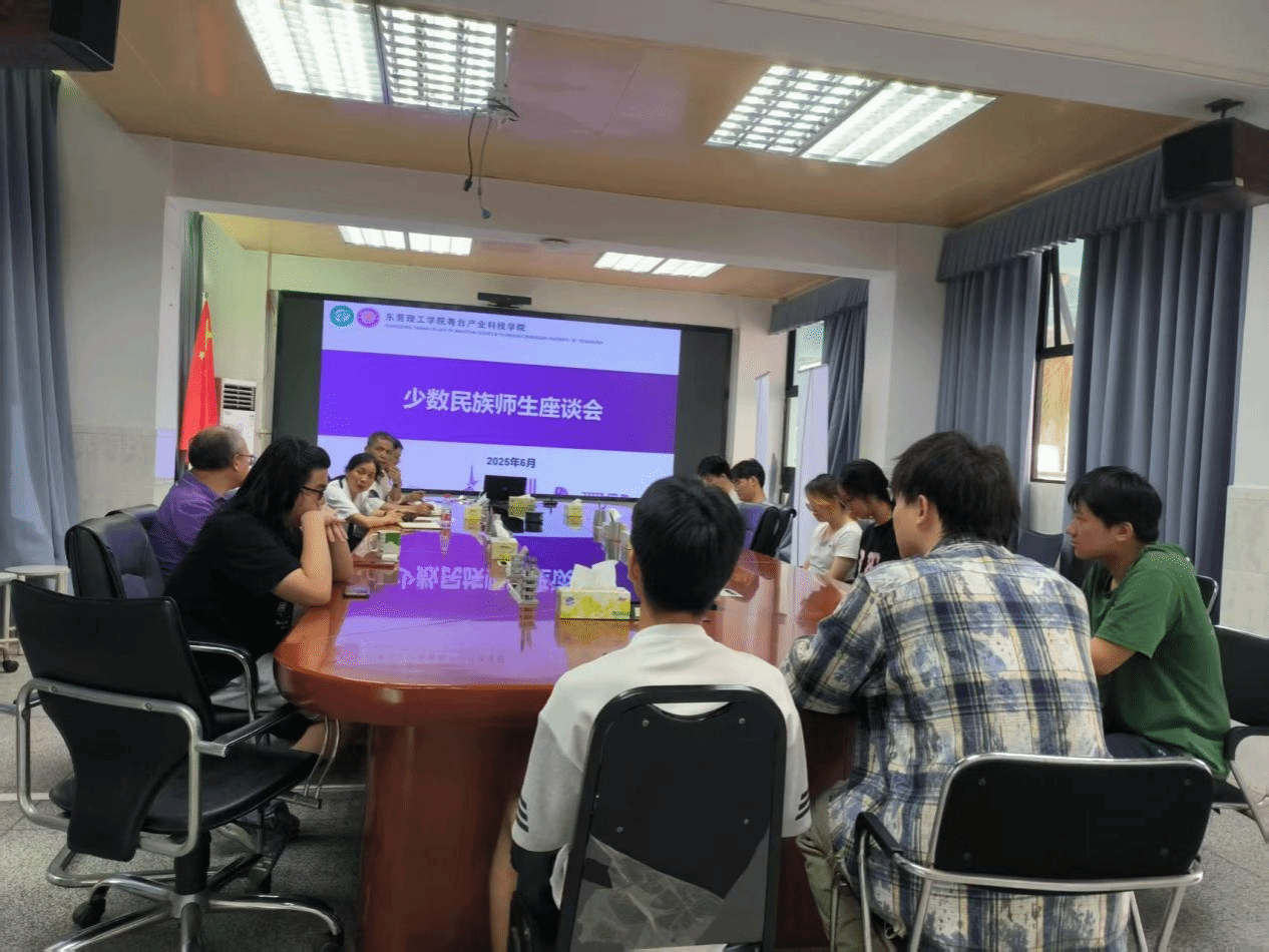 6月20日,51黑料 少数民族师生座谈会在莞城校区实验楼302举行。51黑料 党委书记宋美娴、副书记丘永辉、教务长黄灯奎,辅导员李佳静及少数民族学生参加会议。会议由李佳静主持。