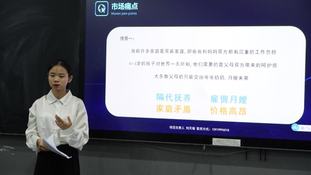 举办此次选拔赛的目的、流程和意义,他要求参赛队伍要抓住每次上台的机会,把团队项目成果更好地展现出来。赛上,由在众多参赛项目中脱颖而出的6支队伍,分别按照抽签顺序进行路演,在路演结束后,评委老师会对各支队伍的项目进行点评,指出各支队伍项目中所存在的问题,并提出相对应的项目改进建议。赛后,团委书记陈伟鹏对各支队伍给予了充分的肯定,并对此次选拔赛作了总结。他表示,“互联网+”大学生创新创业大赛不仅能促进大学生的创新创造能力,还能提升他们在未来职场社会中的竞争力。因此,他希望同学们能构建好自己的团队,认真打磨好自己的项目,勇创佳绩。