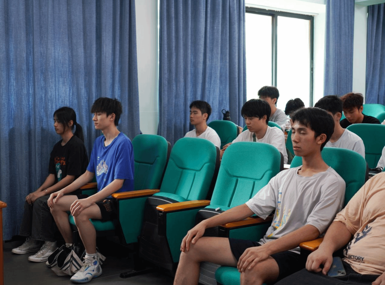 课前,陈壮有老师与同学们谈论睡眠里的熬夜与失眠问题,了解学生关于睡眠的困惑。课上,他用一份测试问卷让同学们了解自己的睡眠情况,并着重从外在因素和内在因素分析失眠的原理,提出一些合适有效的方法建议。在陈壮有老师的指导下,同学们进行了一场8分钟的正念冥想之旅,同学们闭上眼睛,将所有的感受汇聚于己身,感受自我。课后,同学们纷纷表示收获颇多。