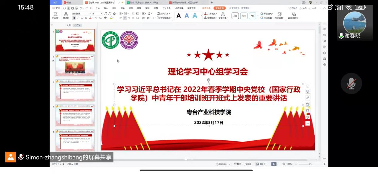 理论学习中心组学习会。院长陈伟、副书记谢春晓以及中心组成员参加会议。因疫情防控要求,学习会以线上形式进行。