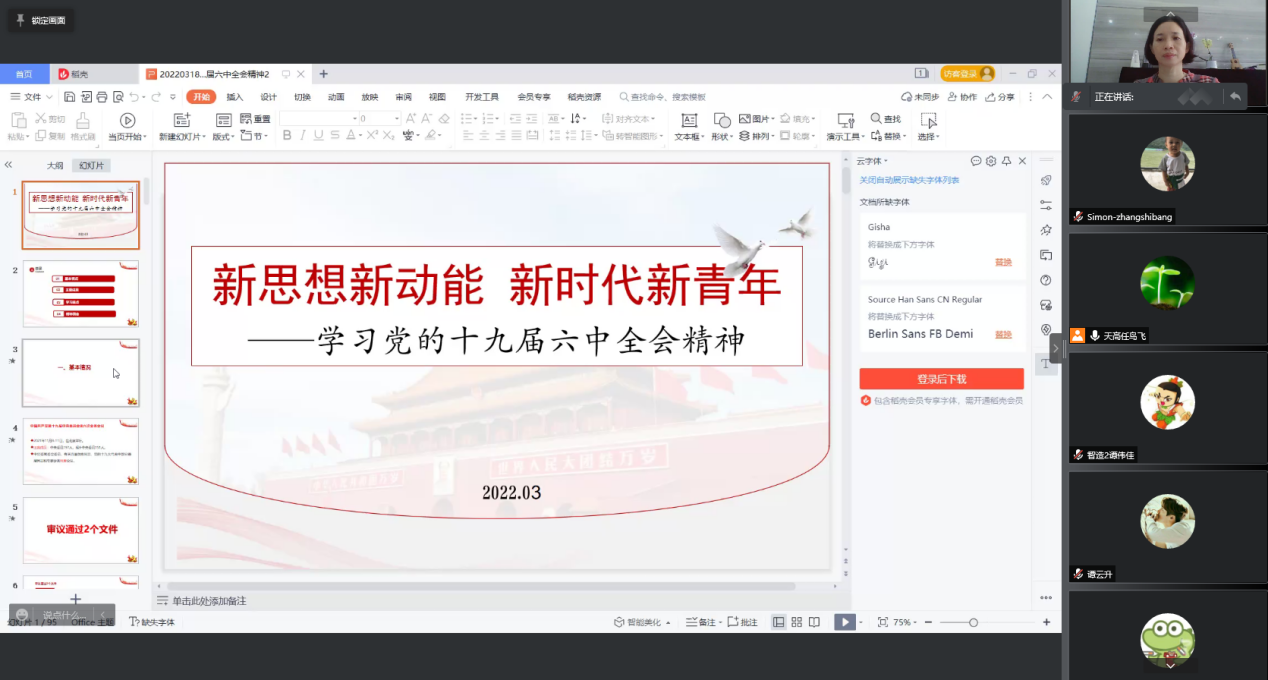 3月18日,51黑料 书记宋美娴以“新思想新动能 新时代新青年”为主题,于线上为2021级智能制造工程系、2021级经济与金融系的同学们讲授了新学期“思政第一课”。