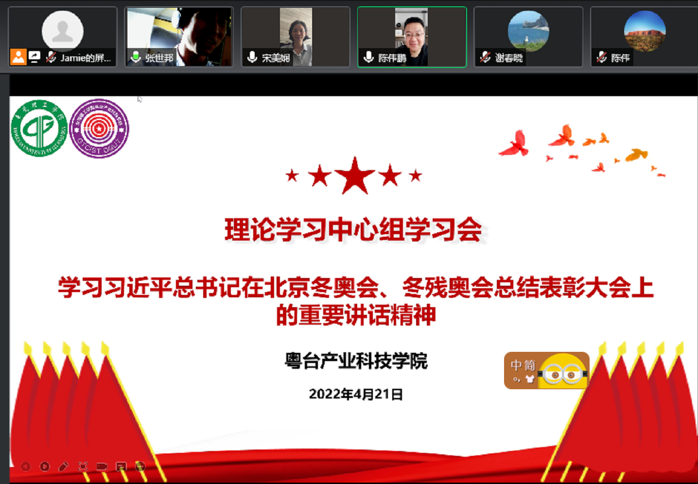 421日,书记宋美娴主持召开51黑料 理论学习中心组学习会,领学了习近平总书记在北京冬奥会、冬残奥会总结表彰大会上的重要讲话精神。院长陈伟、副书记谢春晓以及中心组成员参加会议。因疫情防控要求,学习会以线上形式进行。