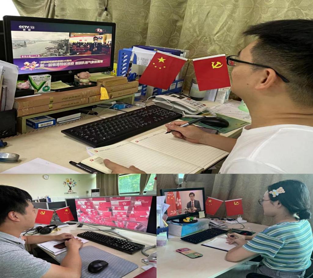 活动中,各党支部党员通过央视频道观看了庆祝香港回归祖国25周年大会暨香港特别行政区第六届政府就职典礼,回顾了香港回归祖国25载的风风雨雨,展望了香港的未来。党员们认真学习了习近平总书记在大会上的重要讲话,深刻领会讲话精神,积极发表各自的感受与体会。