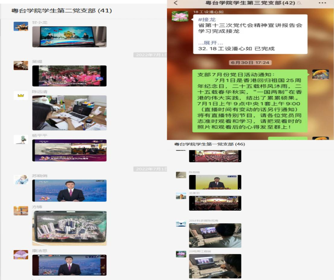 学生第一、第二、第三党支部分别以线上线下相结合的形式组织党员开展7月份的主题党日活动。活动以“共庆香港回归25周年,党员畅谈心声”为主题,各党支部书记主持,党员们积极参加了本次活动。