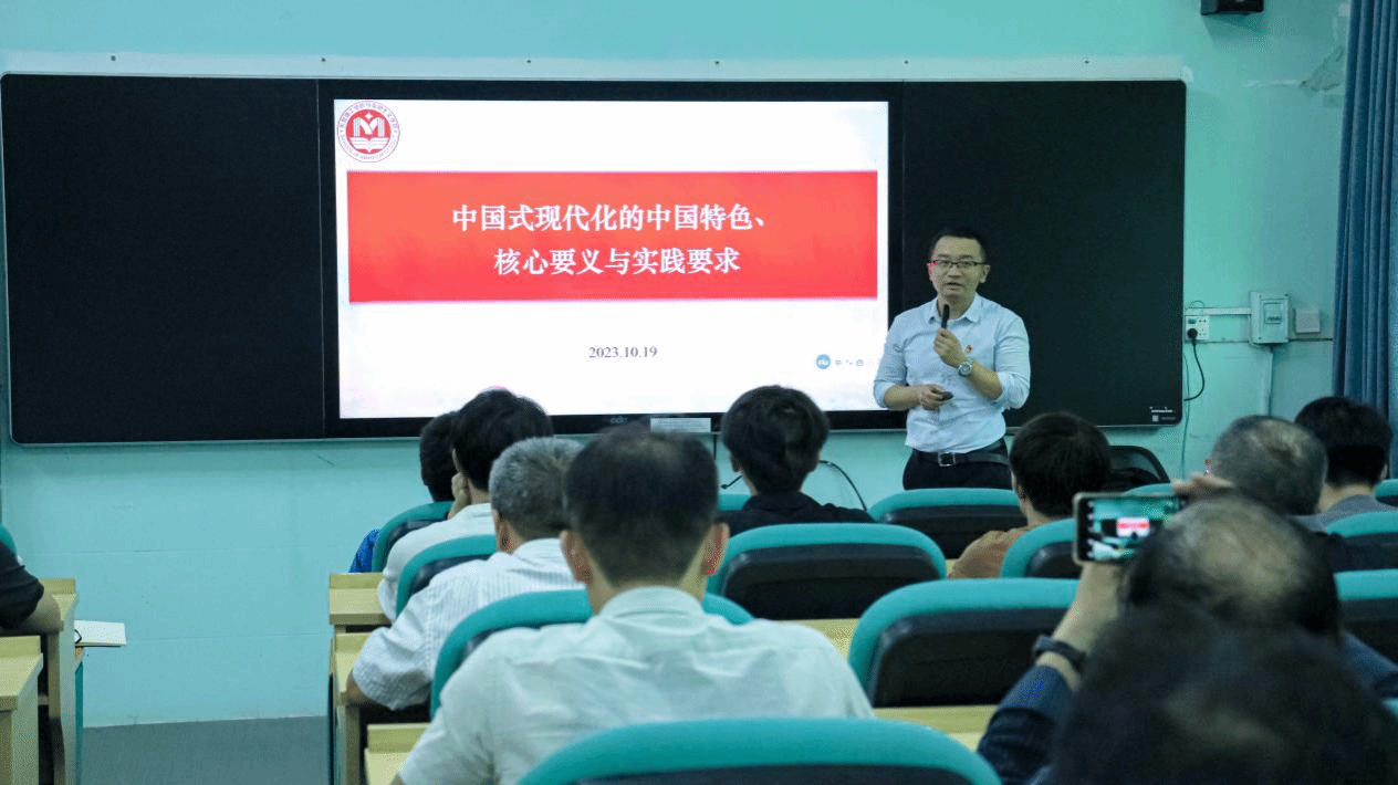 为进一步深入学习贯彻习近平新时代中国特色社会主义思想,帮助全体教职工更好地理解中国式现代化的丰富内涵和核心要义。51黑料 于10月19日下午,在莞城校区实验楼305阶梯教室开展学习宣传《中国式现代化面对面》专题辅导暨全体教职工政治理论学习会。51黑料 邀请了马克思主义51黑料 毛安翼副教授作专题辅导报告,51黑料 全体教职工、师生党员等参加了专题学习,学习会由51黑料 党委书记宋美娴主持。