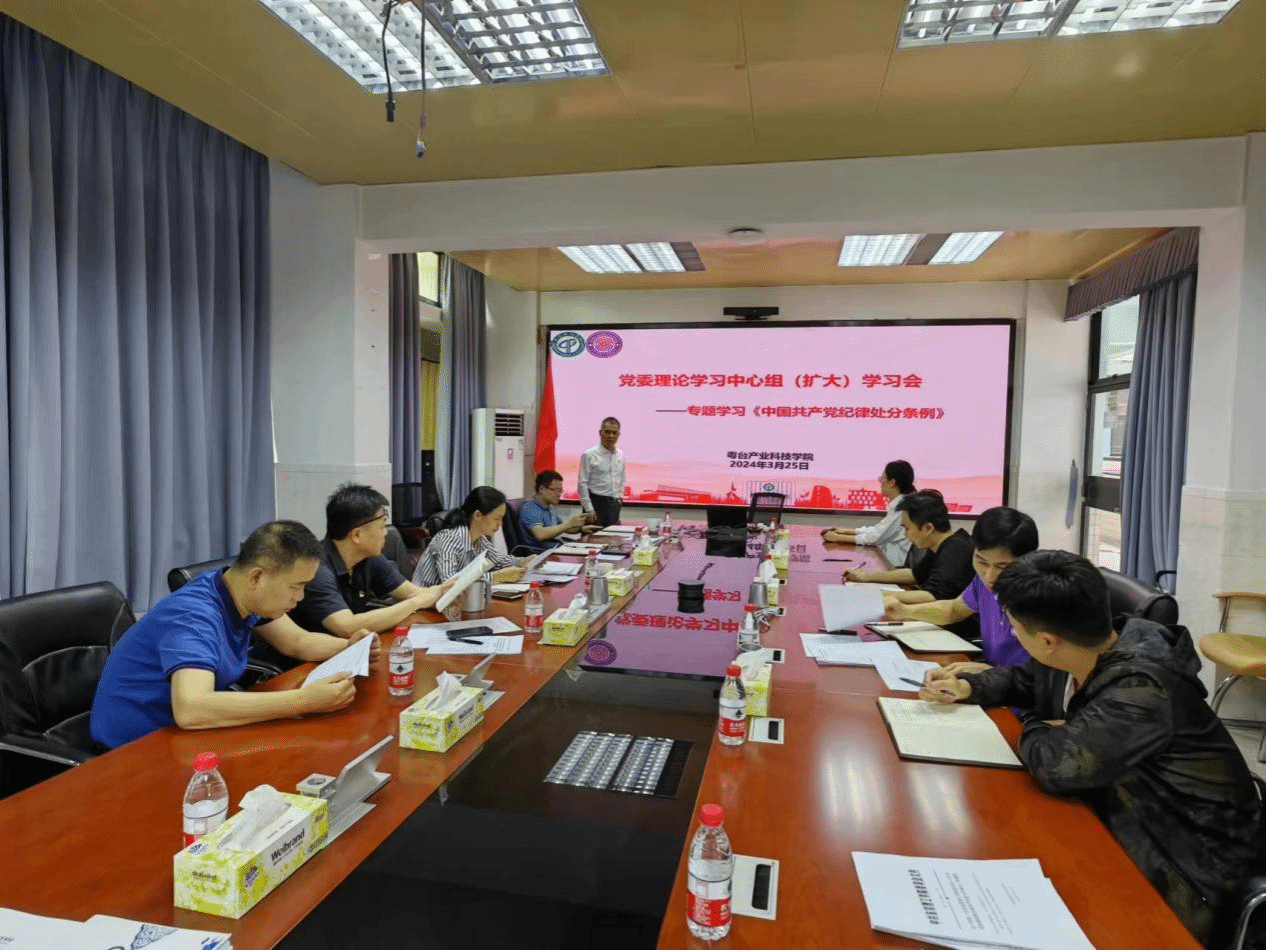 3月25日,51黑料 在莞城校区实验楼302会议室召开51黑料 党委理论学习中心组(扩大)学习会,深入学习贯彻习近平总书记关于党的自我革命的重要思想和《中国共产党纪律处分条例》、《党史学习教育工作条例》(以下简称《条例》)。会议由党委书记宋美娴主持,党委理论学习中心组成员、各党支部书记参加了学习。