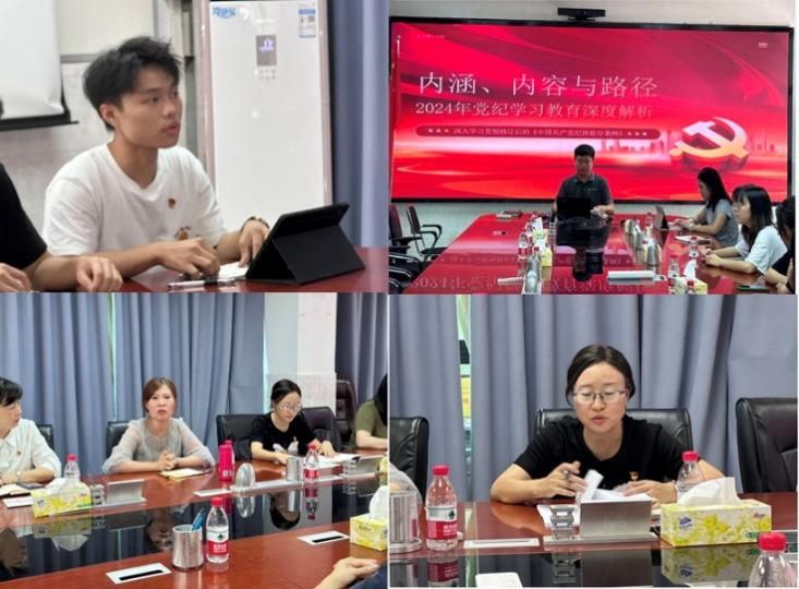 在随后的环节,51黑料 学生第二党支部书记潘雁钦同志领学了《中国共产党纪律处分条例》,并为参会党员同志带来了一节题为《内涵、内容与路径——2024年党纪学习教育深度解析》的微党课。在集体学习环节,党员们逐章逐条学习了《条例》的前三章,认真聆听,积极讨论,纷纷表示要将纪律规矩内化于心、外化于行,不断提升自身党性修养。