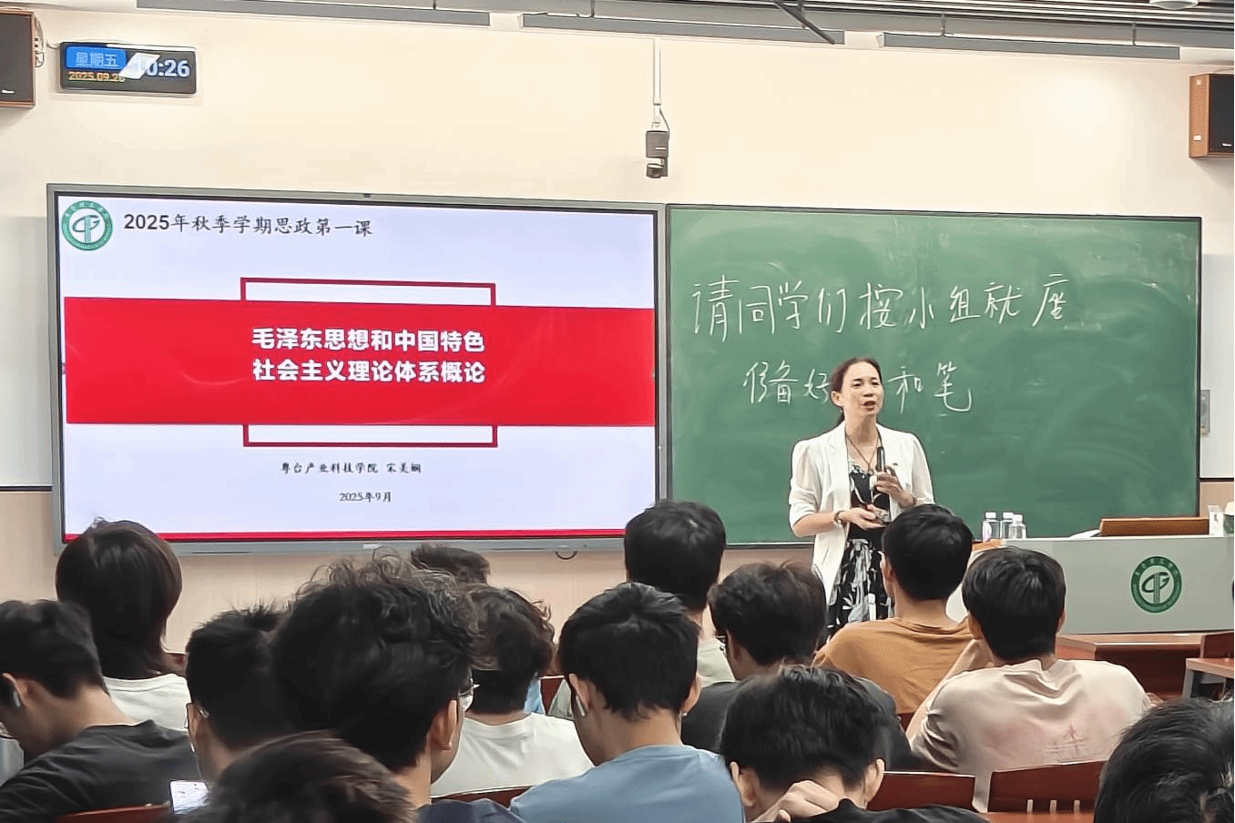 课堂上,宋美娴围绕《毛泽东思想和中国特色社会主义理论体系概论》深入讲述了毛泽东在青年、革命以及新中国成立后三个时期的形象,并进行了客观分析。她还通过引用毛泽东逝世后名人的点评,进一步展现了伟人的形象。同时提出了 “毛泽东思想是毛泽东的思想吗?”“如何准确理解毛泽东思想的主要内容和活的灵魂?”等问题,引导同学们深入思考。最后她勉励同学们,要深刻认识到在中国革命和建设的过程中,把马克思主义基本原理同中国具体实际相结合、同中华民族优秀传统文化相结合所形成的科学理论成果的重大意义,并在新的实践中运用和发展这些成果,充分展现莞工青年的担当。