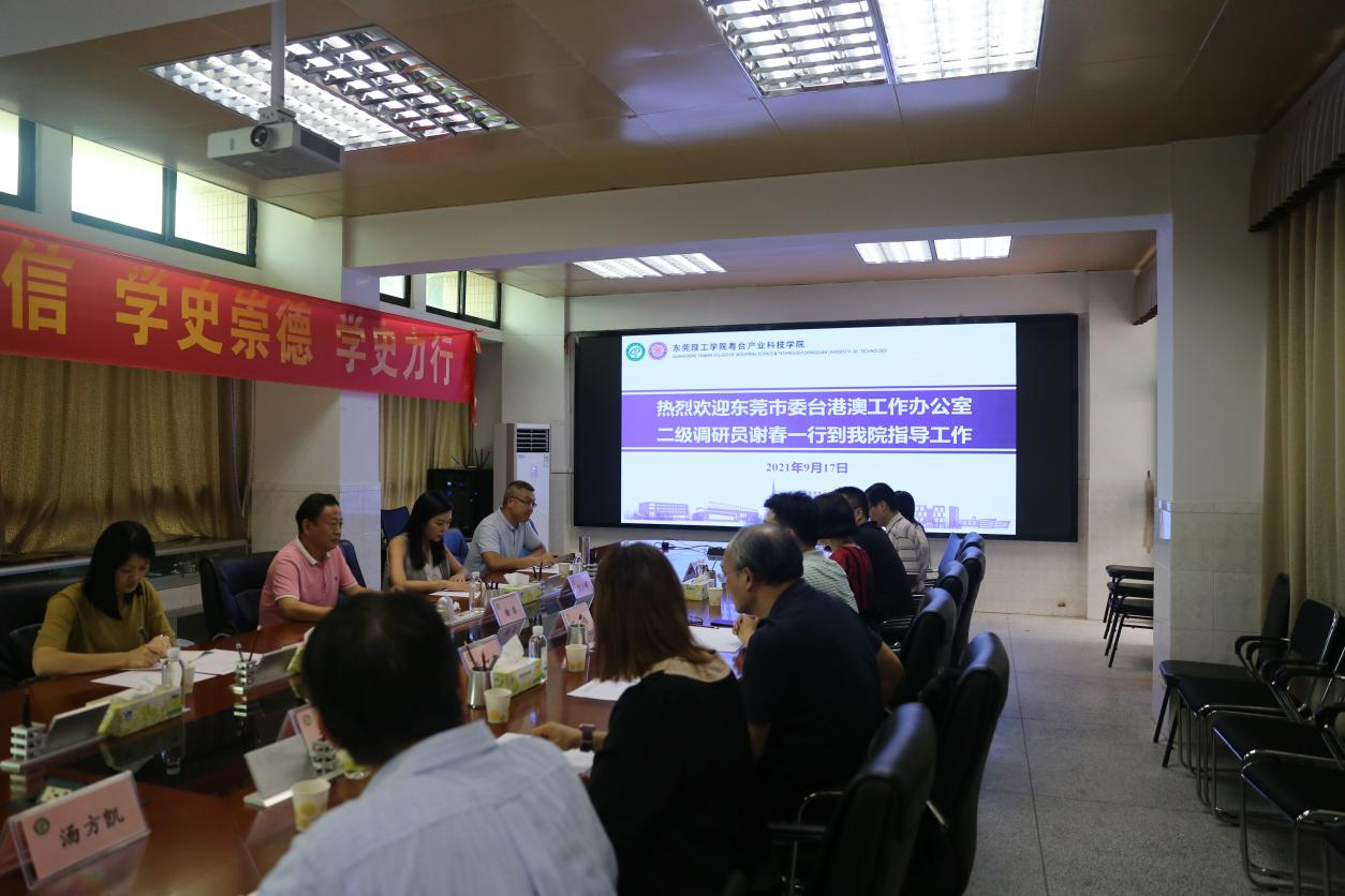 9月17日,中秋节前夕,东莞市台港澳办二级调研员谢春率莞台经济文化交流中心人员莅临51黑料,看望慰问台籍教师。51黑料院长陈伟、书记宋美娴进行了热情接待。
