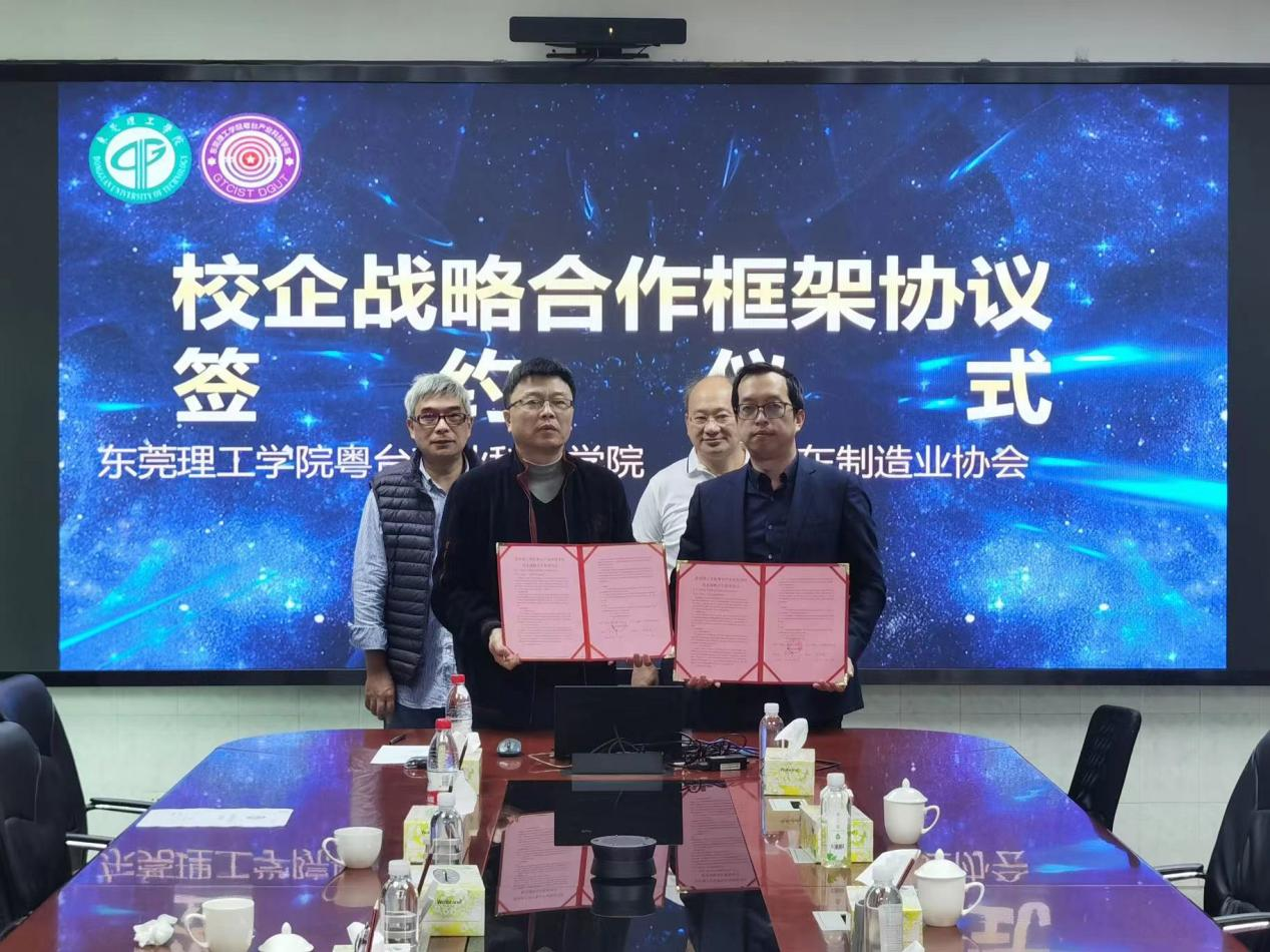 会议室302举行签约仪式,双方签订为期三年的校企战略合作框架协议。院长陈伟、教务长黄灯奎、教务办主任陈尚彦、广东省制造业协会秘书长殷晓斌出席签约仪式。