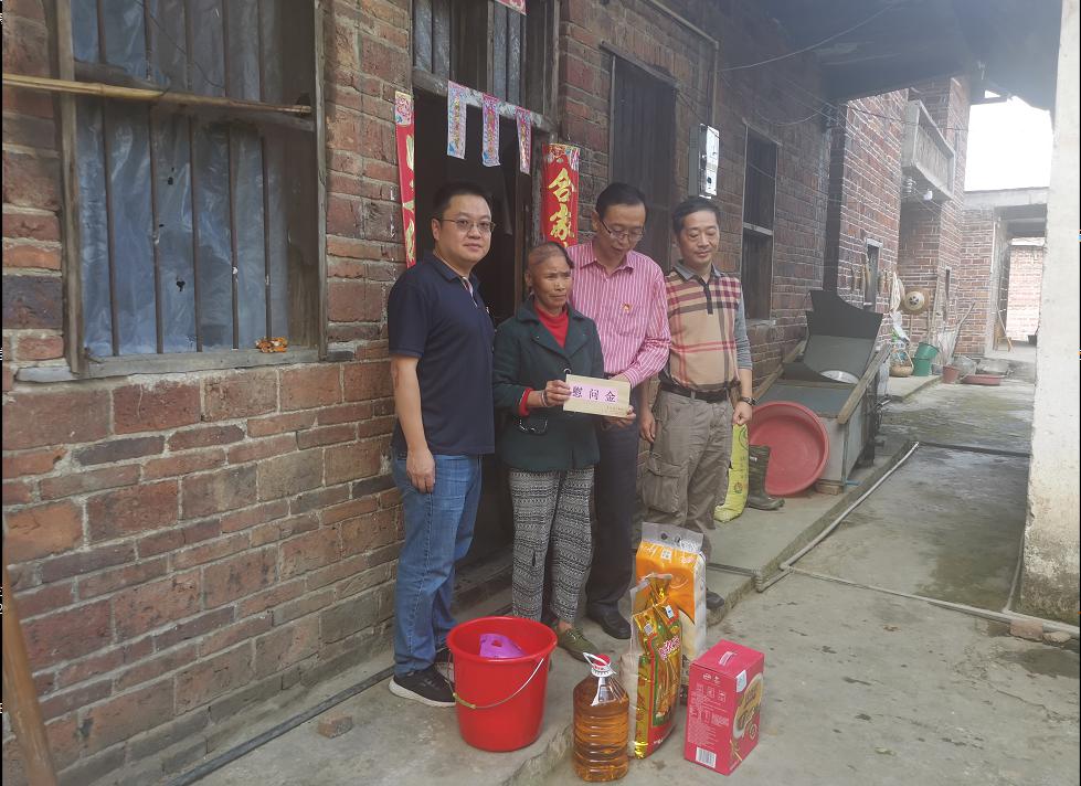 全体教职工将扶贫慰问品和慰问金送到每一位贫困户的手中,并与他们亲切交谈。