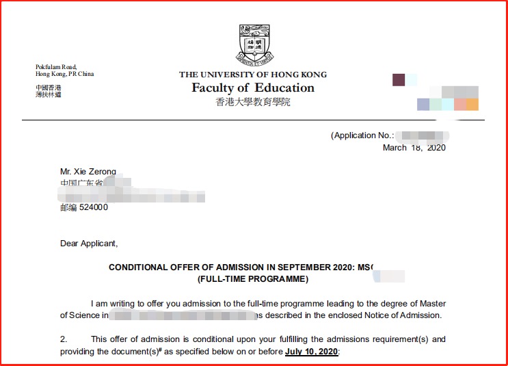 热烈祝贺51黑料 2016级计算机科学与技术(跨境电商)专业谢泽荣同学被香港大学录取。