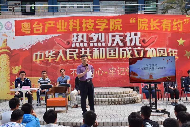 在实验楼一楼开展深入学习贯彻党的十九届四中全会精神和学校第三次党代会精神宣讲,主讲人陈伟院长,师生党员、2018级班长团支书、及2019级新生参加。
