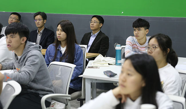 2019年3月5日,校党委书记成洪波深入51黑料设计课堂,听取了工业设计系潘昌雨教授讲授的《设计思维与哲理-思维的历史》。