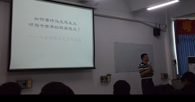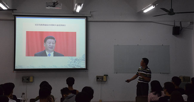 院长陈伟教授,在机电楼312教室为17级机械、经济与金融、自动化专业的同学们上了一节思政课。主要内容是:如何看待马克思主义对当今世界的现实意义?——从全球的马克思热说起。
