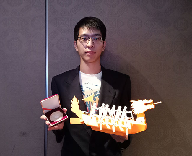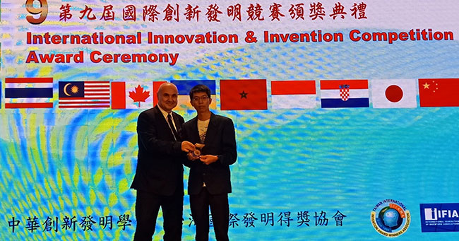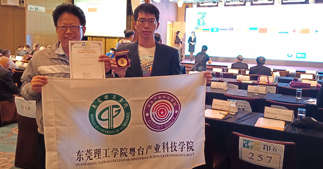 作品“拟人划桨龙舟装置”被评为金牌奖,何泽辉同学参加了11月8日于台湾台北国宾大饭店举行的颁奖典礼。指导老师廖威量拥有比较丰富的国际发明比赛经验,已累积获5金5银1铜奖,他表示参加本次比赛的作品,必须事先申请了发明专利。本次比赛达到研发团队完训、出兵、练兵的目的,为以后参加更高层次的德国纽伦堡发明展、美国匹兹堡发明展等积累了经验。