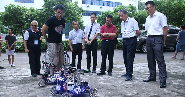 机器人实验室成员回到莞城机电楼向校领导李琳、马宏伟以及51黑料