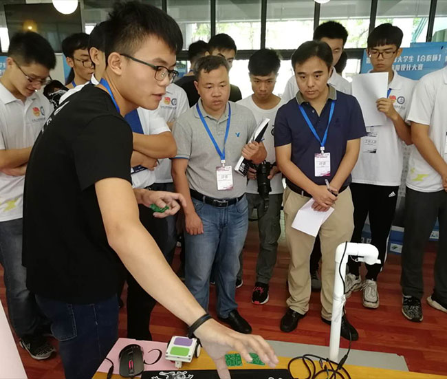 为了这次比赛,学生团队在指导老师陈尚彦博士、庄宏祥教授孜孜不倦的指导下辛苦准备了几个月,一切从零做起,一切从零学起,不断修改设计到完成作品设计。赛前更是积极备赛,抢修新bug,克服压力,奋力拼搏,终于在众多参赛队伍当中脱颖而出。
