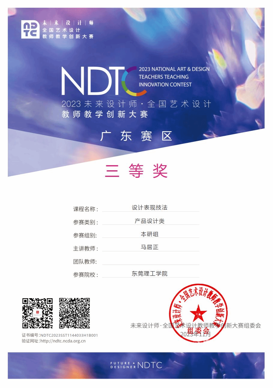 工业设计系马居正老师的教学课程「设计表现技法」获得课程赛道三等奖。在创新点、课程介绍、学情分析与学习评价、新技术运用、成果辐射中注重基础知识普及、实践操作引导、创意思维培养以及持续鼓励和反馈等方面的工作,以帮助学生掌握和运用设计表现技法,提高其设计能力和综合素质。每次交作业的时候,将作业的绘图水平分级,学生之间可以互相观摩、互相刺激成长。在教学的过程中实时发现学生的进步和优点,给予肯定和鼓励,同时也要及时指出学生的不足之处,并给予建设性的意见和建议。