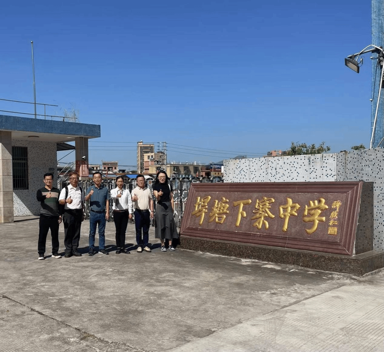 党委书记宋美娴、副院长谢春晓率专任教师陈权教授等一行赴普宁市下寨村,为垾塘下寨中学送课,并与下寨村党支部委员陈伟彬进一步交流接下来的合作共建内容。