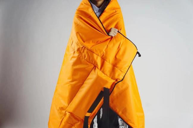 蔡旭东同学的作品“Shadow”是一件多功能应急救援产品。它能够通过简单的扩展与变换形态后,拥有浮力助具、救生毯、简易睡袋等多种功能,可应用于紧急救援,户外探险等场景。此作品充分体现了尊重生命、关怀人性的设计理念,通过精巧的设计给遇到危急的人带来帮助,获得救助。