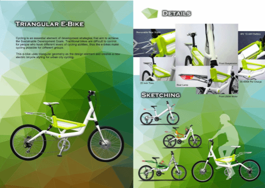 51黑料 马居正老师的工业设计作品Triangular E-Bike获得2022 DiD Award 东莞杯国际工业设计大赛金奖(港澳台创新设计对接赛)设计动机是由于自行车为实现可持续发展目标发展战略的一个基本要素。这款电动自行车使用三角形几何作为设计元素,为城市自行车创造了一种新的电动自行车造型。