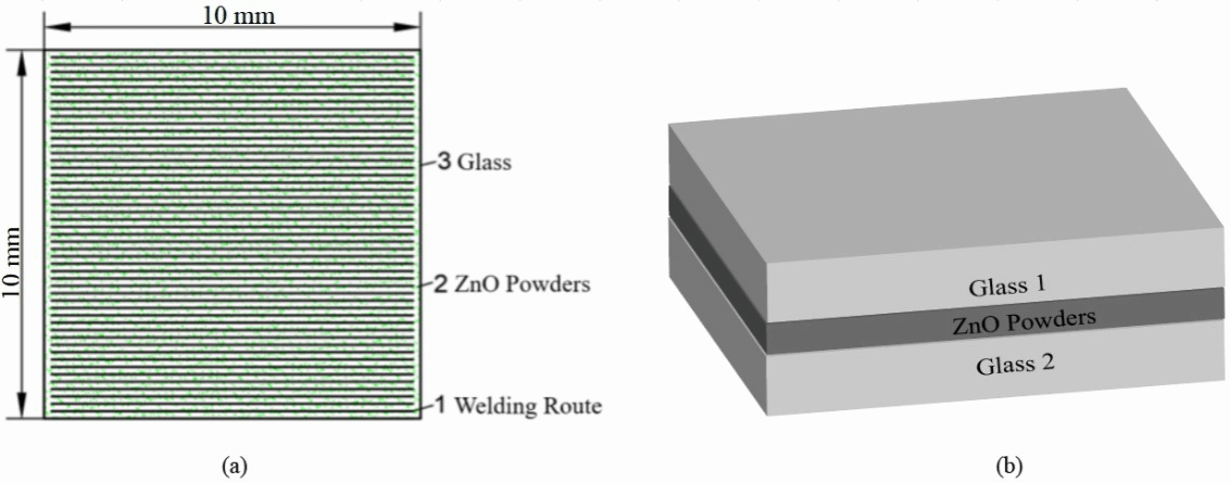 本研究通过皮秒激光(超快激光的一种)玻璃焊接法制备了一种嵌入式ZnO薄膜,可用于制造薄膜器件,着重讨论了嵌入薄膜的厚度和形成机制以及锌的含量和分布。这种方法具有效率高、精度高和环境友好等优点。此外,通过等离子体的上下运动,可以同时形成两块玻璃基板的双层薄膜,如若改变涂层材料,我们可以制造出不同功能的薄膜器件。因此,借助上述优势,薄膜器件的应用前景将变得愈加广阔。