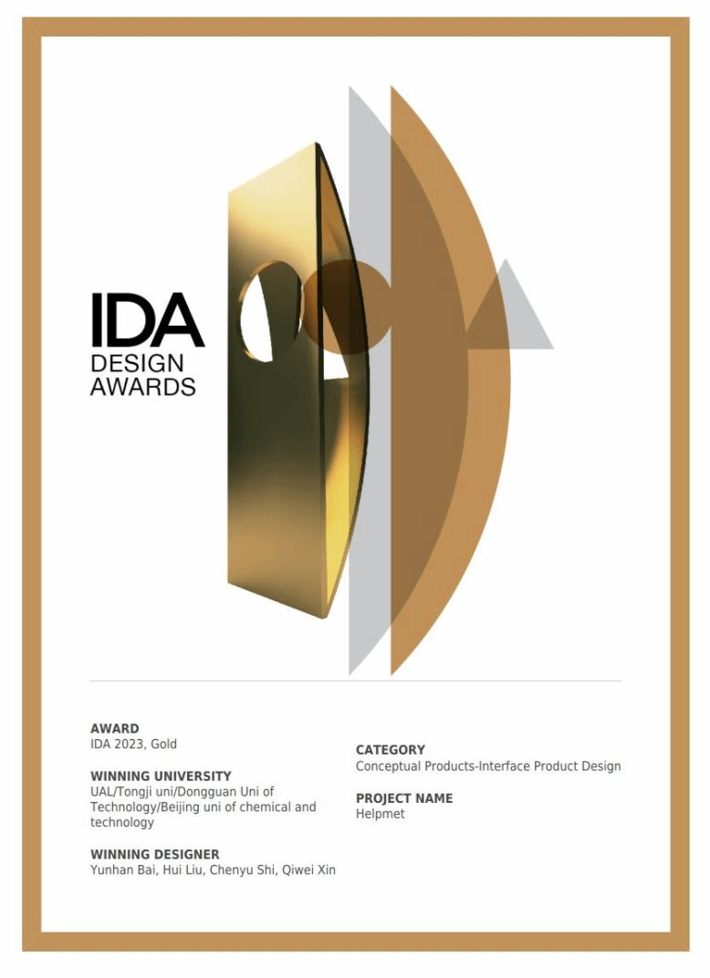 近日,2023美国IDA(International Design Awards)国际设计大奖正式公布。21级工业设计系刘辉同学和外校同学一起做的团队项目从来自全球多个国家的参赛作品中脱颖而出,荣获年度概念产品设计类金奖。