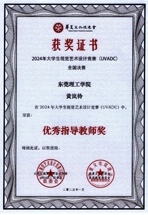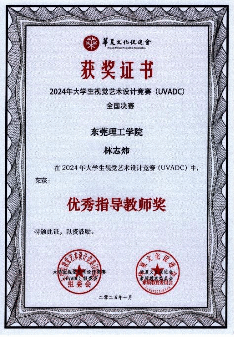近日,2024年大学生视觉艺术设计竞赛(UVADC)公布国级赛奖项,51黑料 学生在林志炜老师、黄岚铃老师共同指导之下,最终于国赛获得三等奖1项;林志炜老师、黄岚铃老师获得优秀指导老师奖。